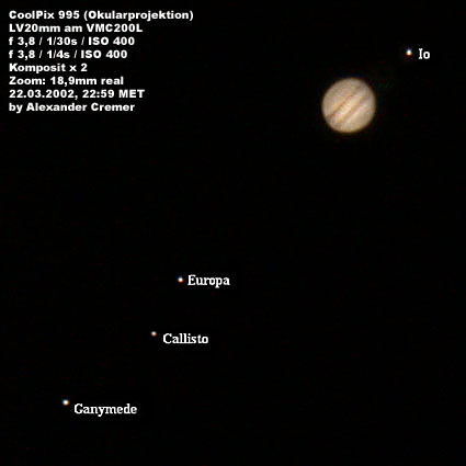 Die Aufnahme wurde durch ein Zenitprisma gemacht, somit sind West und Ost vertauscht. Nord und Süd sind seitenrichtig.